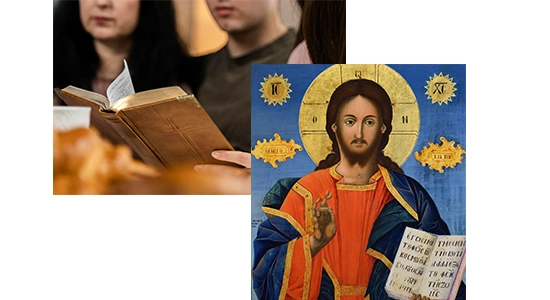The sign of the Cross, depicting the symbol common to Chrisitians, is integral to Orthodox worship and common prayer. It is made with right hand. The thumb and the first two fingers are held together which signify faith in the Holy Trinity, ie.FATHER, SON and HOLY SPIRIT. The last two fingers are bent against the palm. In making the sign of the Cross , we start from the forehead to chest and then touch from the left to the right shoulder. Thus, we confess that the Almighty God came down to earth from heaven, suffered and and died on the cross for our sins and redeemed us from Satan (from the slavery of sin to the freedom of righteousness and sonshipof God).